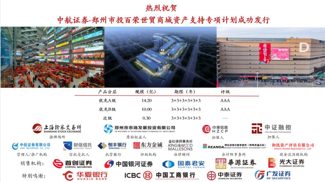 3月28日,鄭州市市場發(fā)展投資有限公司(以下簡稱鄭州市投)成功發(fā)行“鄭州市投百榮世貿(mào)商城資產(chǎn)支持證券(CMBS)”,發(fā)行規(guī)模24.5億元,優(yōu)先級證券獲AAA信用評級。